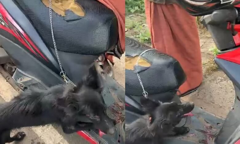 തൃശൂരില് സ്കൂട്ടറിന് പിന്നില് നായയെ കെട്ടിവലിച്ചു ; ആളുകൾതടഞ്ഞപ്പോൾ വണ്ടി ഉപേക്ഷിച്ച് യുവാവ് ഓടി രക്ഷപ്പെട്ടു