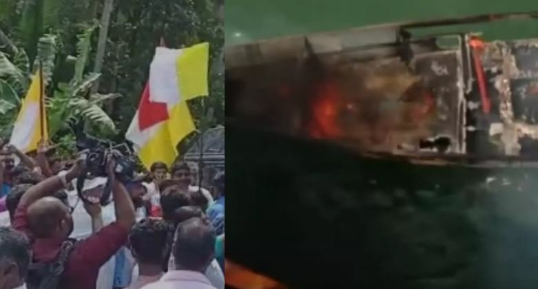 വിഴിഞ്ഞം സമരം ശക്തം : വള്ളം കത്തിച്ചും ബാരിക്കേഡുകള് കടലിലെറിഞ്ഞും സമരക്കാര്