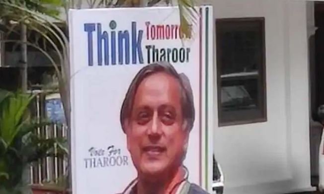 മുതിര്ന്ന നേതാക്കളെ ഞെട്ടിച്ച് കെ പി സി സി ആസ്ഥാനത്ത് തരൂരിനായി പ്രചാരണ ബോര്ഡ്