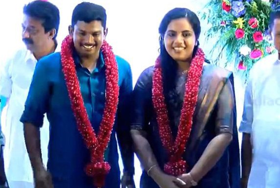 രക്തഹാരം കൈമാറി, ലളിതമായ ചടങ്ങില് ആര്യയും സച്ചിന് ദേവും വിവാഹിതരായി