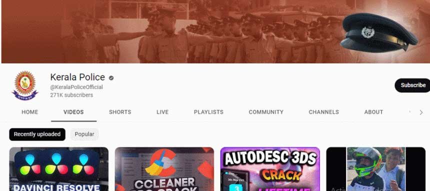 കേരള പോലീസിന്റെ യൂട്യൂബ് ചാനല് ഹാക്ക് ചെയ്തു