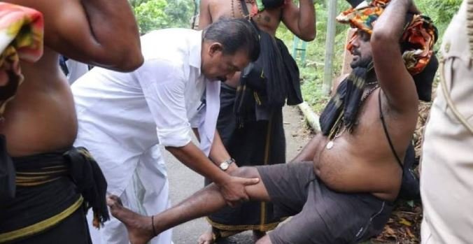 കാല്വേദന മൂലം തളര്ന്നിരുന്ന ശബരിമല തീര്ത്ഥാടകന് സാന്ത്വനമേകി മന്ത്രി കെ രാധാകൃഷ്ണന്