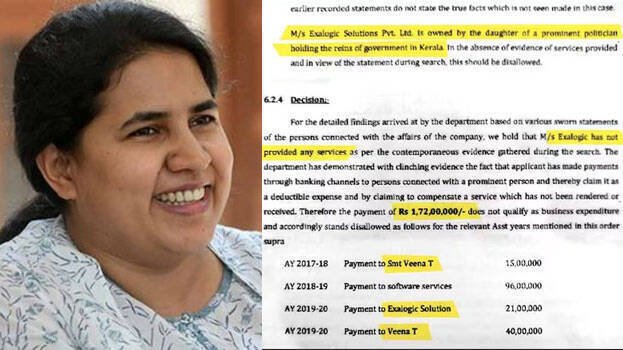 മുഖ്യമന്ത്രി പിണറായി വിജയന്റെ മകളും മുഹമ്മദ് റിയാസിന്റെ ഭാര്യയുമായ ടി. വീണ സ്വകാര്യ കമ്പനിയില് നിന്ന് കോടികളുടെ മാസപ്പടി വാങ്ങിയെന്ന വിവരം പുറത്തുവന്നു