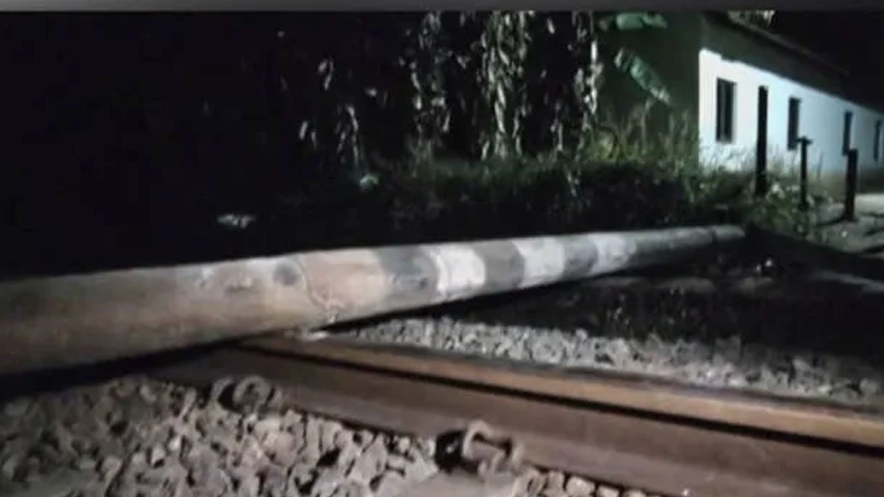 റെയിൽവേ പാളത്തിന് കുറുകെ ടെലിഫോൺ പോസ്റ്റ് വച്ചു, അട്ടിമറി സാദ്ധ്യത പരിശോധിക്കുന്നു; തലനാരിഴയ്ക്ക് ഒഴിവായത് വൻദുരന്തം