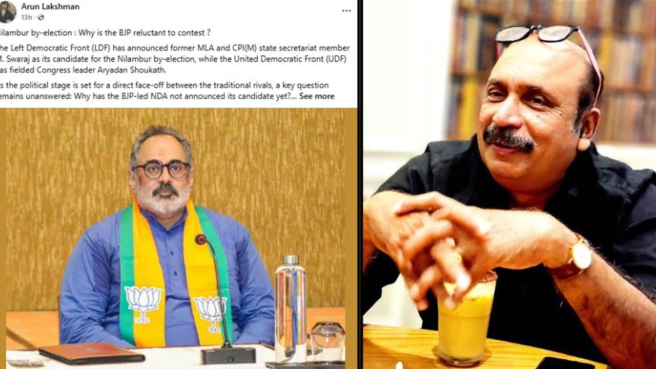 നിലമ്പൂര് ഉപതിരഞ്ഞെടുപ്പില് ബിജെപി മത്സരിക്കേണ്ടതില്ലെന്ന ,രാജീവ് ചന്ദ്രശേഖറിന്റെ നിലപാടിനെതിരെ കടുത്ത വിമര്ശനവുമായി; അരുണ് ലക്ഷ്മണ്