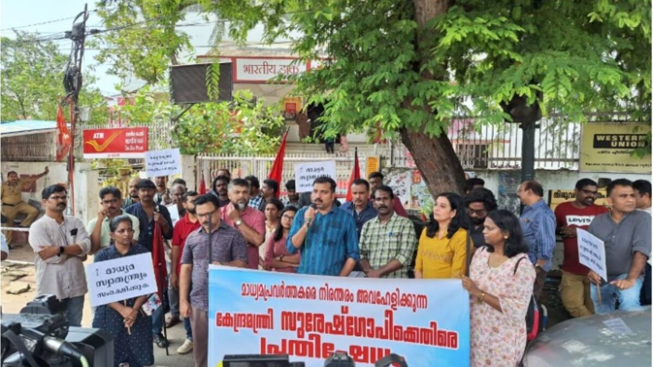 സുരേഷ് ഗോപിക്കെതിരെ പത്രപ്രവര്ത്തക യൂണിയന്റെ പ്രതിഷേധ മാര്ച്ചും ധര്ണയും
