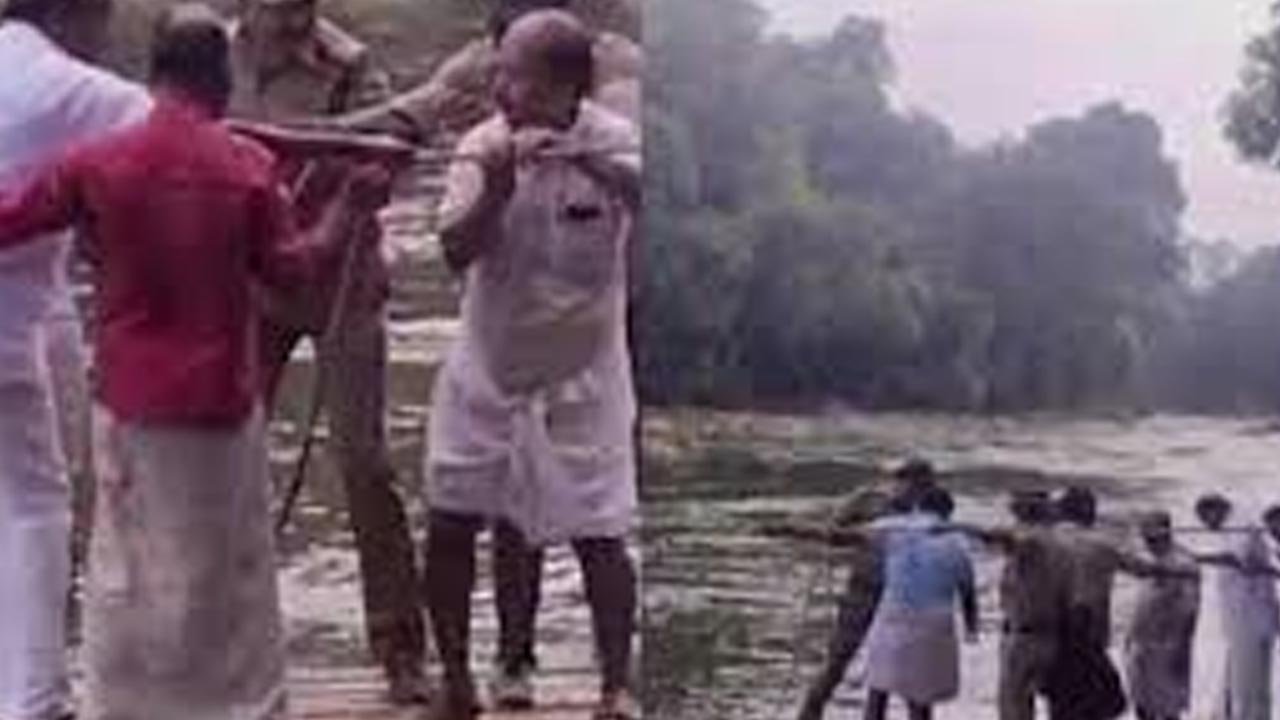 തെരഞ്ഞെടുപ്പ് പ്രചാരണത്തിനായി പോകുന്നതിനിടെ മന്ത്രി ഒ.ആര് കേളുവും എൽഡിഎഫ് നേതാക്കളും ചങ്ങാടത്തിൽ കുടുങ്ങി