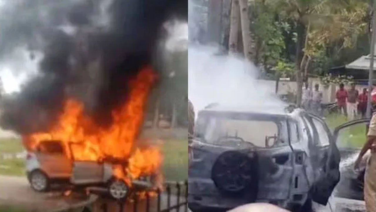 കൊല്ലത്ത് ഓടിക്കൊണ്ടിരുന്ന കാറിന് തീപിടിച്ചു; ദമ്പതികൾ രക്ഷപ്പെട്ടത് തലനാരിഴയ്ക്ക്