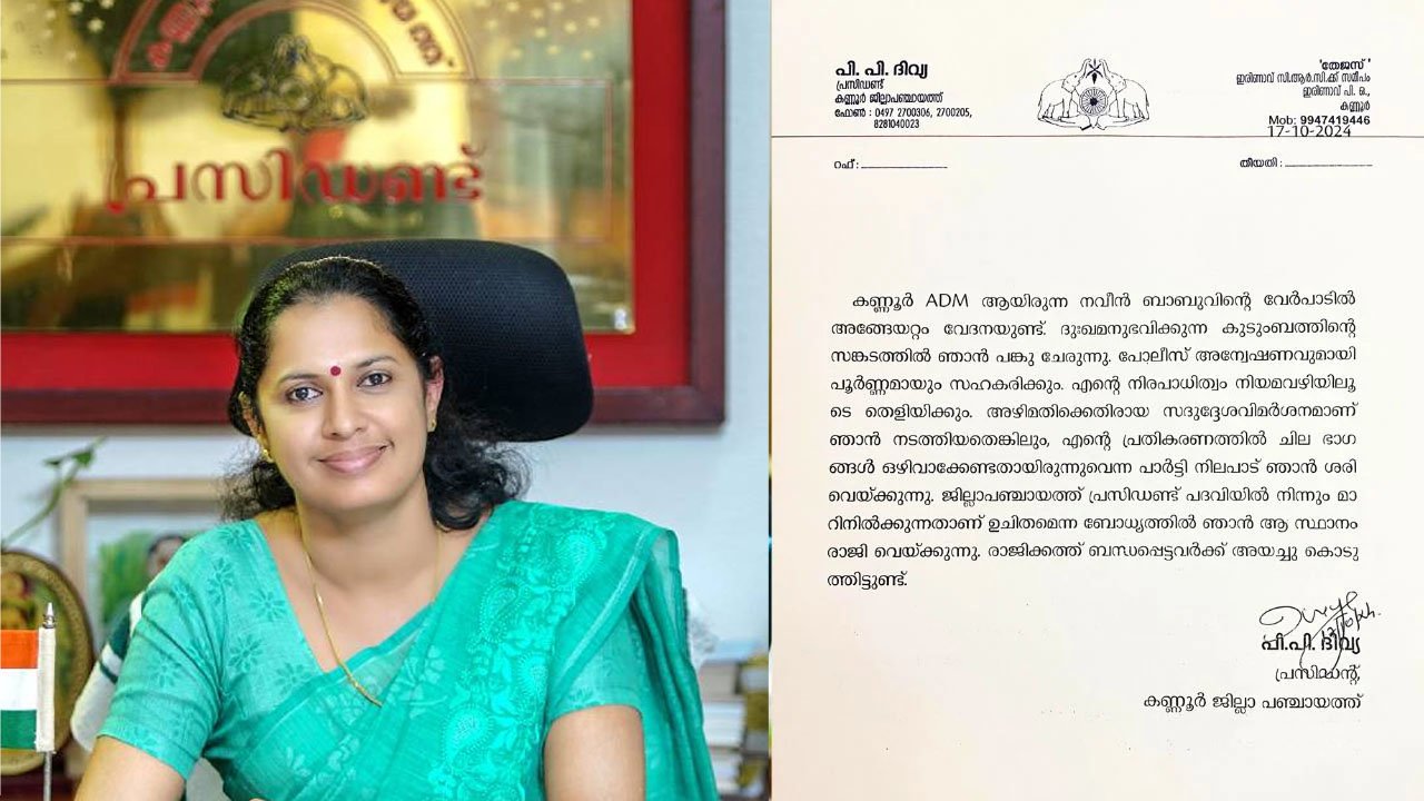കൈവിട്ടു പാർട്ടി; പിപി ദിവ്യ രാജിവെച്ചു