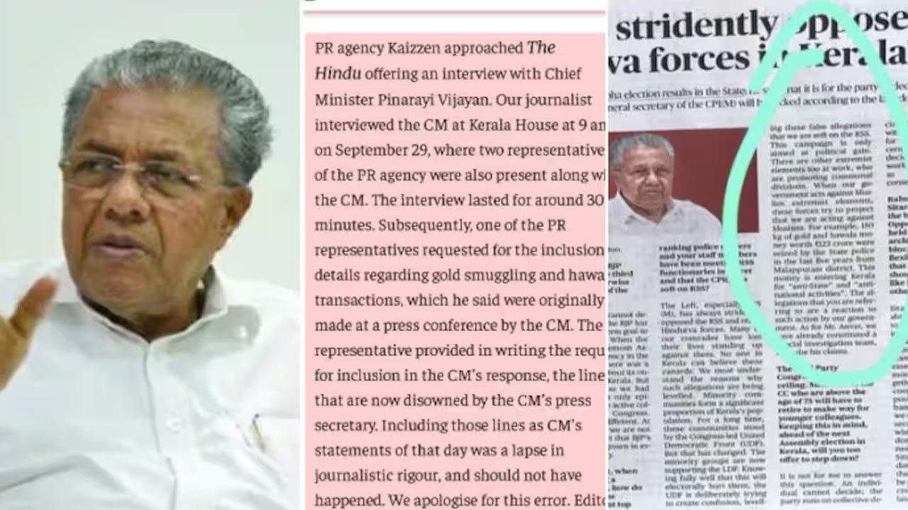 മുഖ്യമന്ത്രി പിണറായി വിജയൻ്റെ വിവാദ അഭിമുഖത്തിൽ പ്രതികരണവുമായി ‘ദി ഹിന്ദു’ ദിനപത്രം രംഗത്ത്