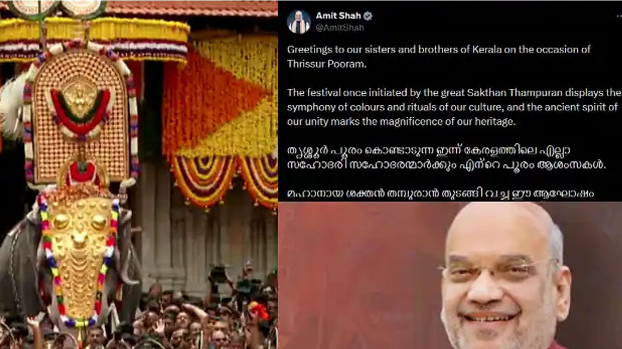 തൃശൂർ പൂരത്തിന് ആശംസകൾ നേർന്ന് കേന്ദ്ര ആഭ്യന്തര മന്ത്രി അമിത് ഷാ