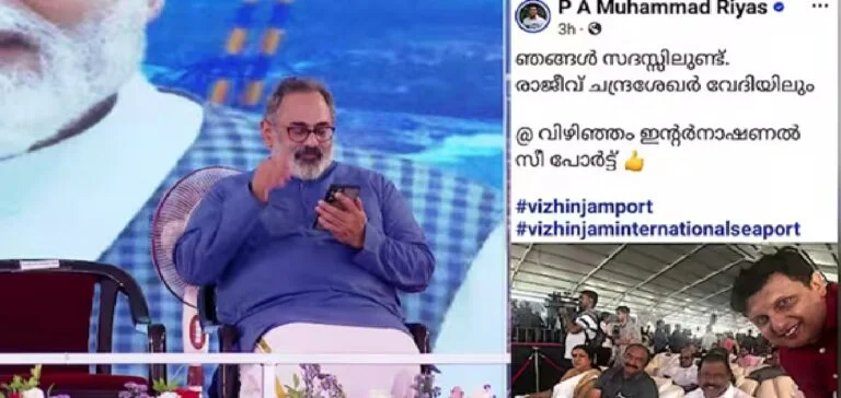 വിഴിഞ്ഞം ഉദ്ഘാടന ചടങ്ങിലെ ഇരിപ്പിടത്തെച്ചൊല്ലിയുള്ള പരിഹാസത്തിൽ സിപിമ്മിന് മറുപടിയുമായി; രാജീവ് ചന്ദ്രശേഖർ