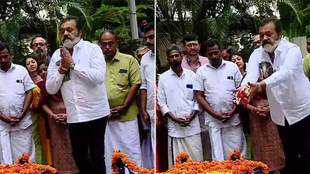 കെ കരുണാകരന്റെ സ്മൃതികുടീരത്തിൽ പുഷ്പാർച്ചന നടത്തി കേന്ദ്രമന്ത്രി സുരേഷ് ഗോപി