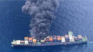 ‘200 മീറ്റർ അകലം പാലിക്കണം’; തീപിടിച്ച കപ്പലിലെ കണ്ടെയ്നറുകൾ കേരള തീരത്ത് വന്നടിയാൻ സാദ്ധ്യത