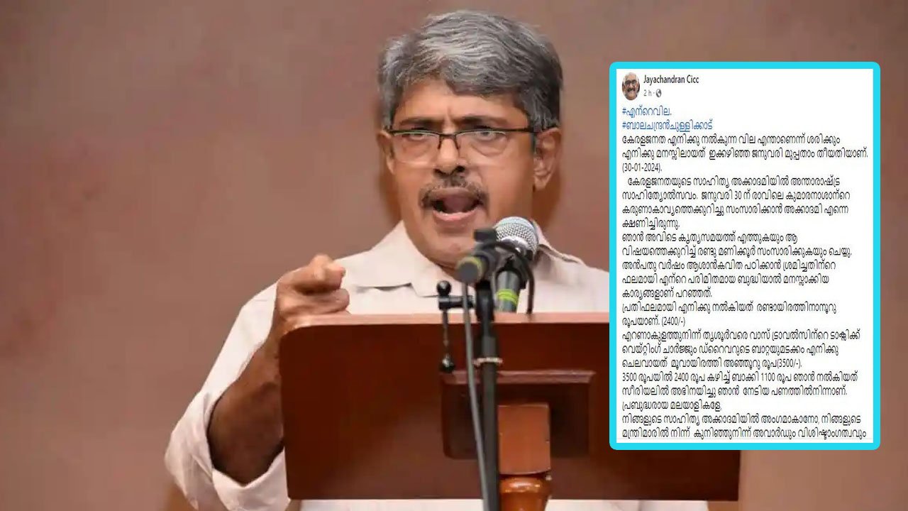 കേരളജനത എനിക്കിട്ട വില 2400 രൂപ”; സാഹിത്യ അക്കാദമിക്കെതിരെ ബാലചന്ദ്രന് ചുള്ളിക്കാട്