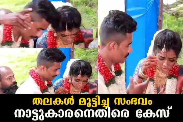 നവവധുവിന്റെയും വരന്റെയും തലകള് മുട്ടിച്ച സംഭവം; നാട്ടുകാരനെതിരെ കേസ്