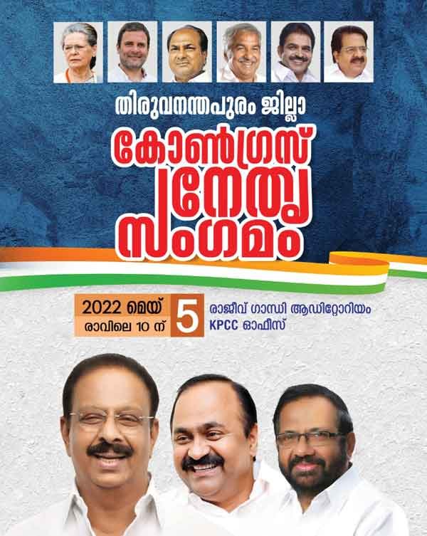 കോൺഗ്രസ് ജില്ലാ നേതൃസംഗമം കെ പി സി സി പ്രസിഡൻ്റ് കെ.സുധാകരൻ ഉദ്ഘാടനം ചെയ്യും