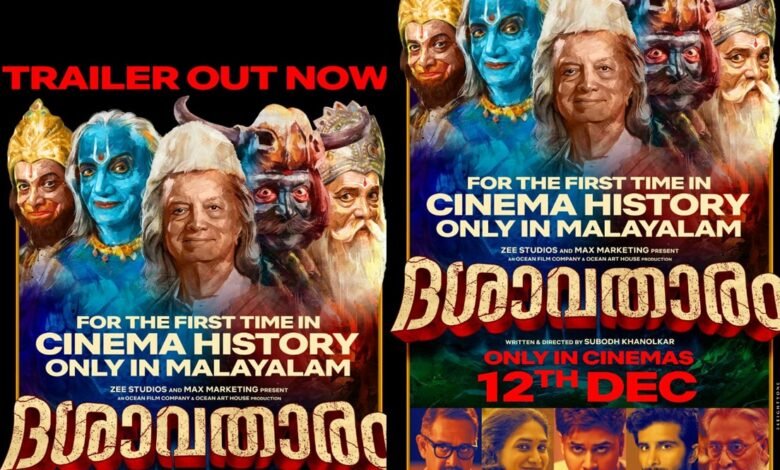 സീ സ്റ്റുഡിയോയുമായി സഹകരിച്ച് മാക്സ് മാർക്കറ്റിംഗ് അവതരിപ്പിക്കുന്ന “ദശാവതാരം” മലയാളം പതിപ്പിൻ്റെ ട്രെയ്ലർ പുറത്ത്. മറാത്തിയിലെ ബ്ലോക്ക്ബസ്റ്റർ ആയി മാറിയ ഈ ചിത്രത്തിന്റെ മലയാളം പതിപ്പ് 2025 ഡിസംബർ 12 ന് ആണ് കേരളത്തിൽ റിലീസ് ചെയ്യുന്നത്. സുബോധ് ഖാനോൽക്കർ രചിച്ചു സംവിധാനം ചെയ്ത ചിത്രം നിർമ്മിച്ചത് ഓഷ്യൻ ഫിലിം കമ്പനി, ഓഷ്യൻ ആർട്ട് ഹൌസ് പ്രൊഡക്ഷൻ എന്നീ ബാനറുകളിൽ സുജയ് ഹാൻഡെ, ഓങ്കാർ കേറ്റ്, സുബോധ് ഖനോൽക്കർ, അശോക് ഹാൻഡെ, ആദിത്യ ജോഷി, നിതിൻ സഹസ്രബുധെ, മൃണാൾ സഹസ്രബുധെ, സഞ്ജയ് ദുബെ, വിനായക് ജോഷി എന്നിവർ ചേർന്നാണ്. ചിത്രം മലയാളത്തിൽ അവതരിപ്പിക്കുന്നത് മാക്സ് മാർക്കറ്റിംഗ് ബാനറിൽ ഉമേഷ് കുമാർ ബൻസാൽ, ബവേഷ് ജനവ്ലേക്കർ, വരുൺ ഗുപ്ത. ചരിത്രത്തിൽ ആദ്യമായാണ് ഒരു മറാത്തി ചിത്രത്തിന്റെ മലയാളം പതിപ്പ് കേരളത്തിൽ തീയേറ്റർ റിലീസായെത്തുന്നത്.