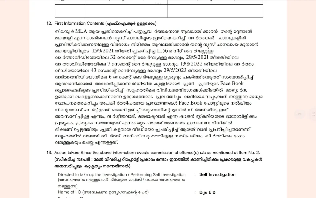 മതസ്പർദ്ധ വളർത്തൽ, വ്യാജരേഖ ചമയ്ക്കല്‍, ഭീഷണിപ്പെടുത്തൽ, അപമാനിക്കൽ തുടങ്ങിയവയ്ക്കാണ് കേസെടുത്തിരിക്കുന്നത്. ഇതേ ഷാജൻ സ്‌കറിയക്കെതിരെ നടപടിയെടുക്കണമെന്നും അറസ്റ്റ് ചെയ്ത് ജയിലിലടയ്ക്കണമെന്നുമുള്ള അൻവറിന്റെ ആവശ്യം സർക്കാർ നിരാകരിച്ചുവെന്ന കാരണം പറഞ്ഞാണ് പിവി അൻവറും സിപിഎമ്മും തമ്മിൽ അകലുന്നത്. ഷാജൻ സ്‌കറിയയിൽ നിന്ന് ഒന്നരക്കോടി രൂപ കൈക്കൂലി വാങ്ങിയാണ് മുഖ്യമന്ത്രിയുടെ പൊളിറ്റിക്കൽ സെക്രട്ടറി പി ശശിയും എഡിജിപി അജിത് കുമാറും ഷാജനെതിരെ കേസ് ഒതുക്കിയെന്നാണ് പിവി അൻവറിന്റെ ആരോപണം.