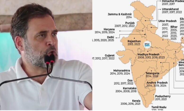 ബിഹാർ നിയമസഭാ തെരഞ്ഞെടുപ്പിൽ എൻഡിഎ നിർണ്ണായക വിജയം നേടിയതിന് പിന്നാലെ കോൺഗ്രസ് നേതാവ് രാഹുൽ ഗാന്ധിക്കെതിരെ ബിജെപി. വോട്ടെണ്ണൽ അവസാനിക്കാനിരിക്കെ കഴിഞ്ഞ രണ്ട് പതിറ്റാണ്ടിനിടെ രാഹുൽ ഗാന്ധിക്ക് നേരിട്ട 95 തിരഞ്ഞെടുപ്പ് പരാജയങ്ങൾ അടയാളപ്പെടുത്തിയ ഒരു ഭൂപടം സമൂഹമാധ്യമങ്ങളിൽ വൈറലായി