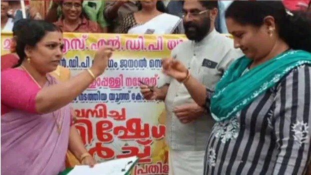 വെള്ളാപ്പള്ളി നടേശനുവേണ്ടി രക്തതിലകം ചാർത്തി പ്രതിജ്ഞ ചെയ്ത് വനിതാ പ്രവർത്തകർ