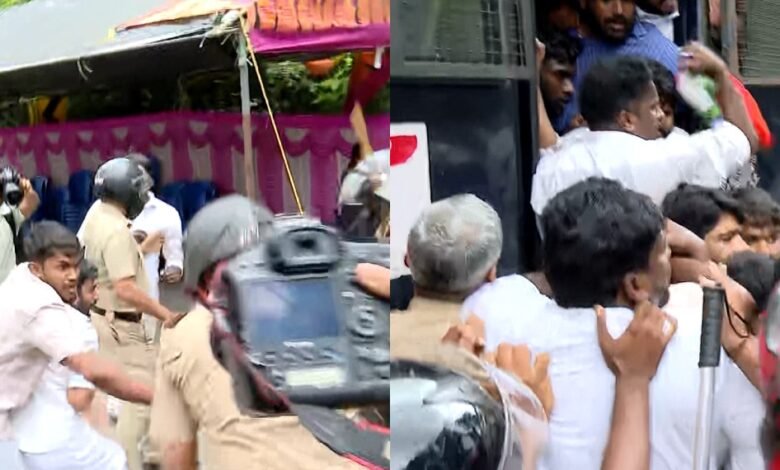 ആരോഗ്യമന്ത്രിക്കെതിരായ യൂത്ത് കോണ്ഗ്രസ് പ്രതിഷേധം; വിവിധയിടങ്ങളില് സംഘര്ഷം